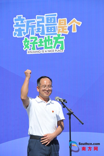 “新疆是個好處所”新華網+19個援疆省市全媒體采訪運動授旗典禮現場。阮志峰 攝